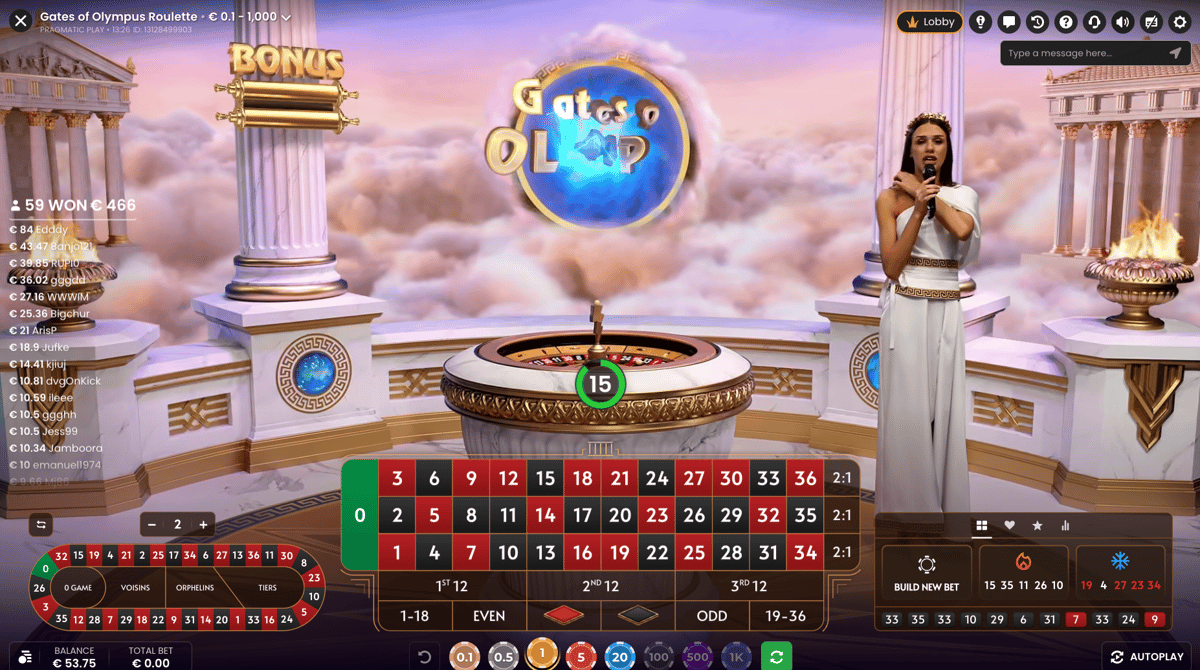 Gates of Olympus är en av världens mest spelade slots. Nu har Pragmatic Play tagit Zeus, hans åskviggar och det välbekanta bonussystemet och fört in alltihop i ett live casinorum med ett riktigt rouletthjul i mitten.